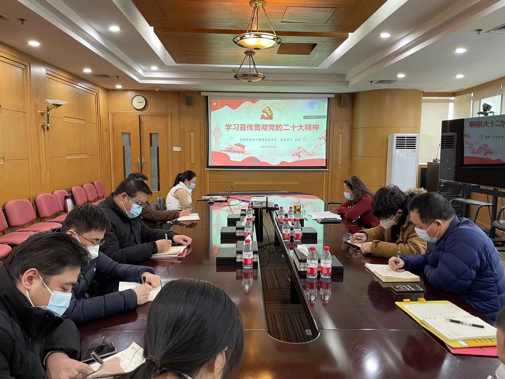 12月29日下午,省糧油進出口集團黨委宣講隊成員,黨委委員、紀委書記劉妮在基層黨建工作聯系點五豐和金潤豐黨支部宣講黨的二十大精神,五豐和金潤豐黨支部全體黨員參會。