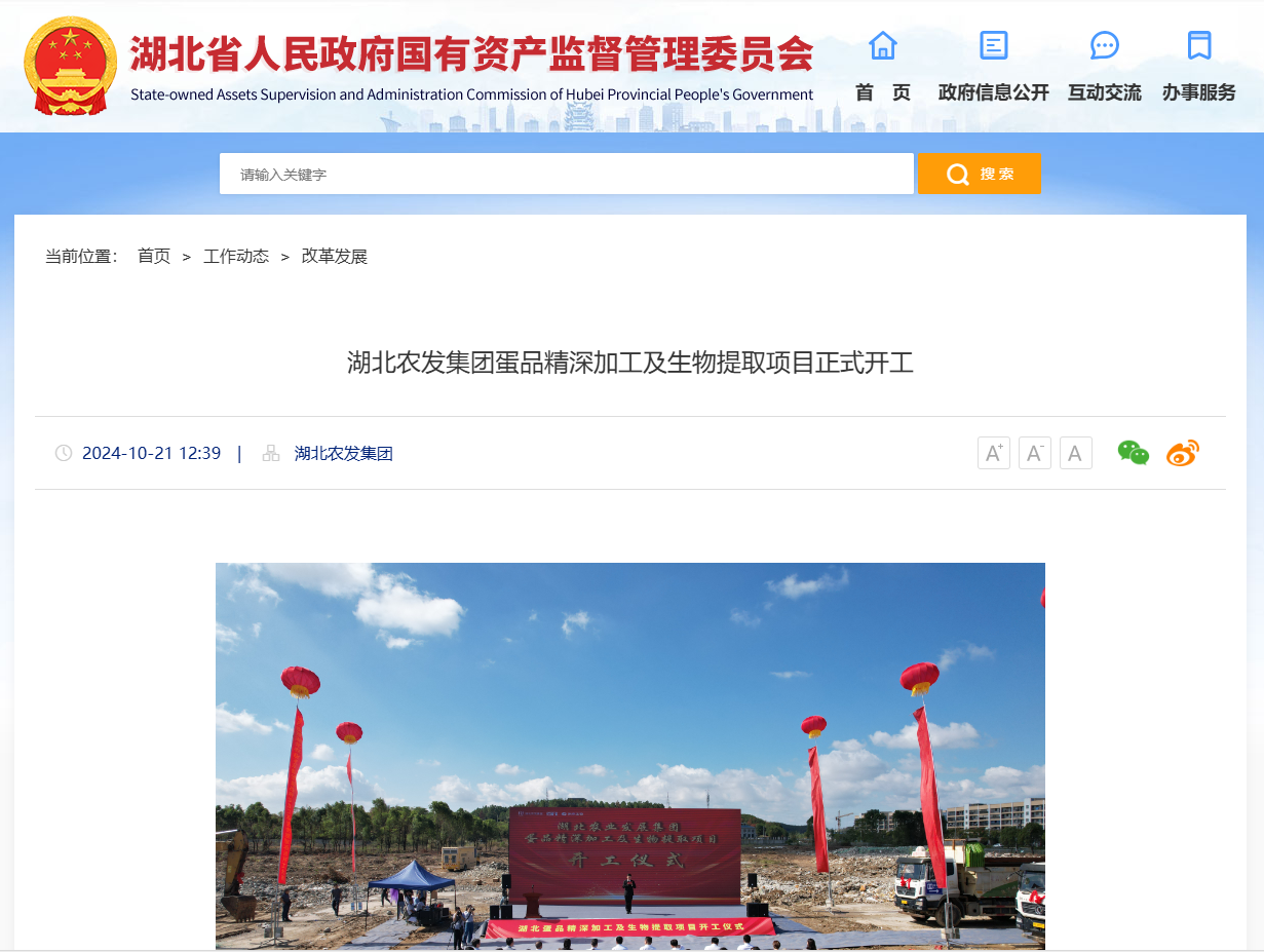 湖北省國資委:湖北農(nóng)發(fā)集團(tuán)蛋品精深加工及生物提取項(xiàng)目正式開工