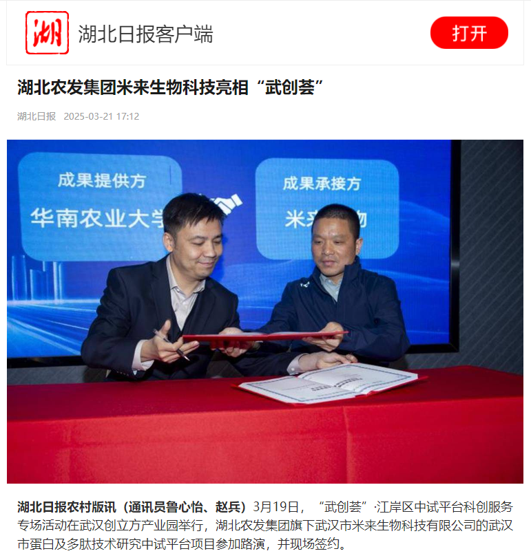 湖北日報(bào):湖北農(nóng)發(fā)集團(tuán)米來生物科技亮相“武創(chuàng)薈”
