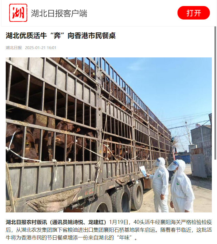 湖北日報:湖北優(yōu)質活牛“奔”向香港市民餐桌