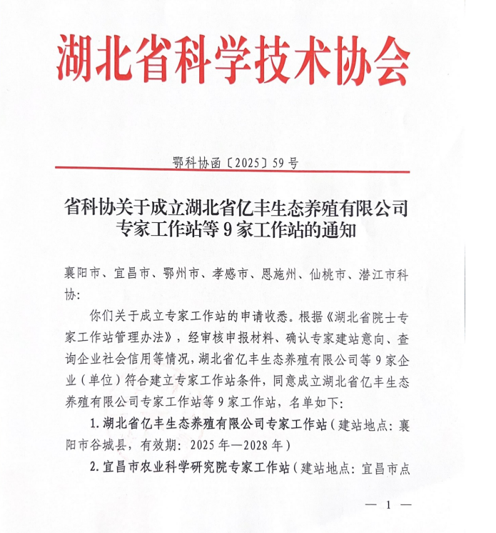 喜報!湖北省億豐生態養殖有限公司專家工作站成功獲批